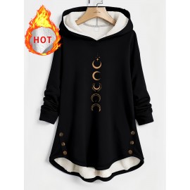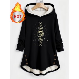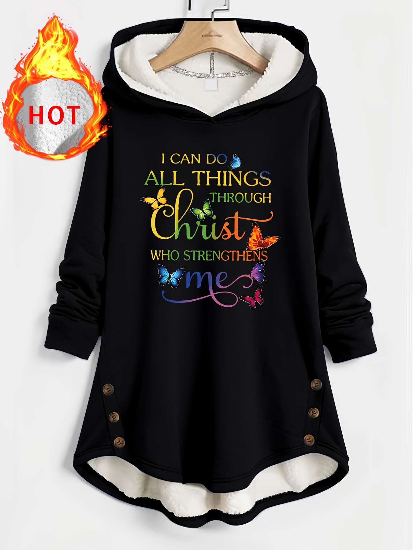 [Christian Faith Hooded Coat] Plus Size - Women's Plus Size Christian Faith Hooded Coat - Lined Hooded Sweatshirt With Bible Verse Print (John 15:5) & Christian Slogan, Casual Pullover For Fall/Winter, Soft Warm Winter Jacket, PLUS SIZE