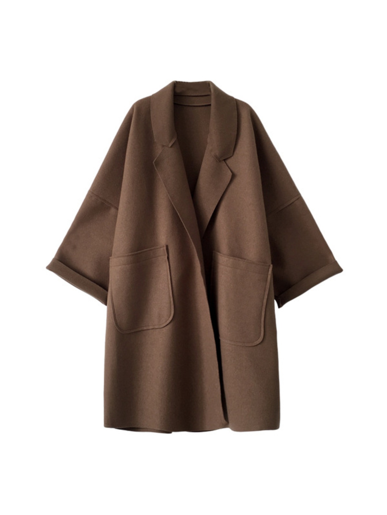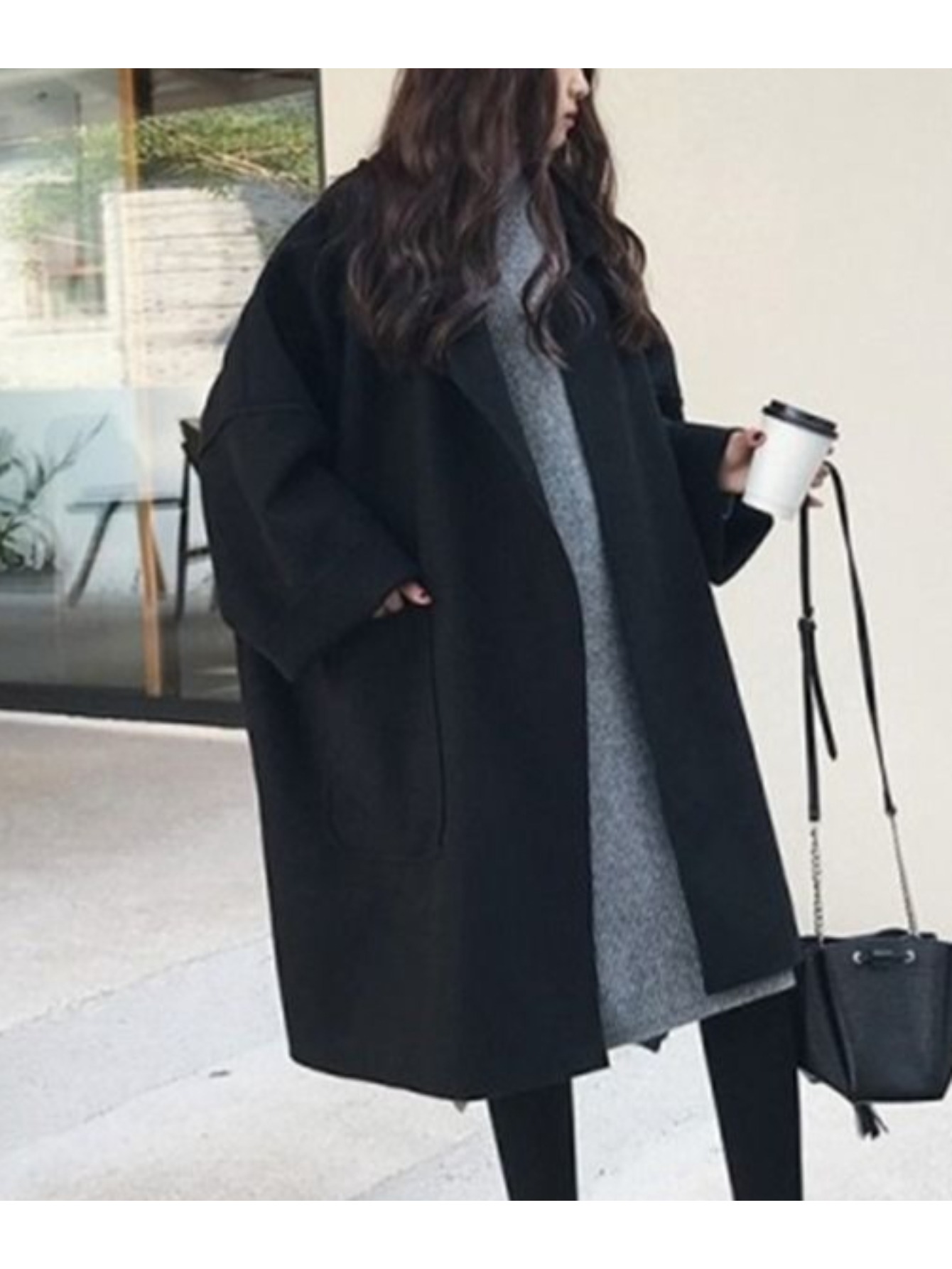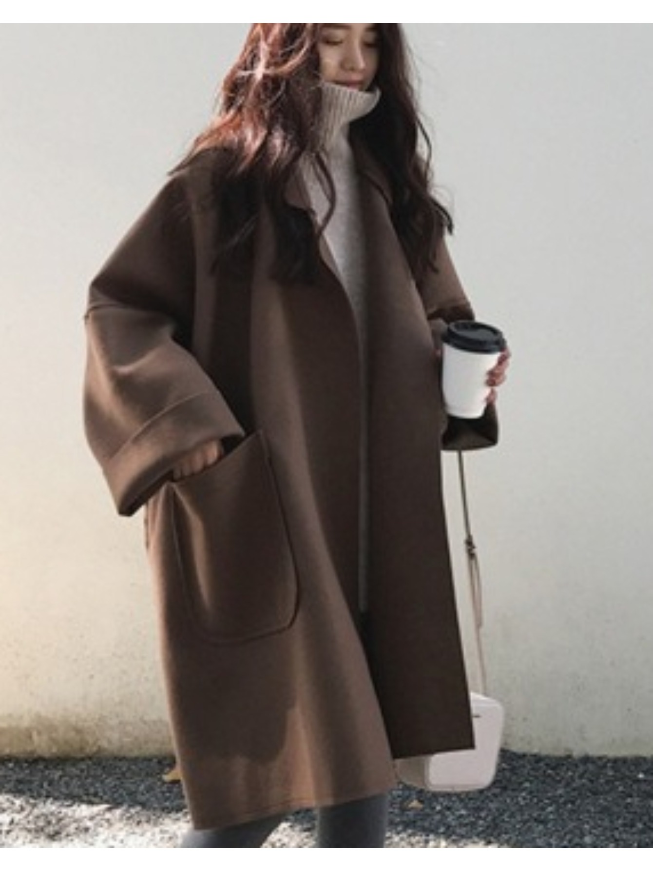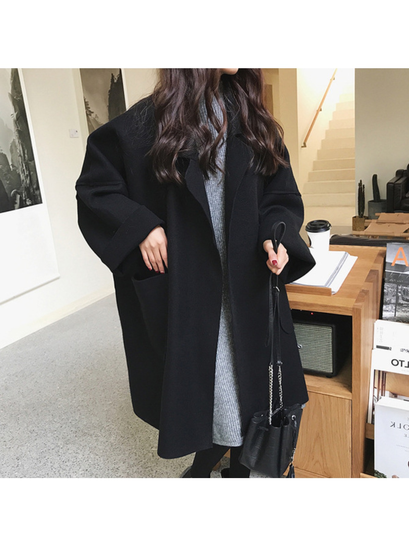 Women's New Korean Winter Coat - Collar Loose-Fit Mid-Length Jacket, Solid Color Warm Outerwear for Fall & Winter, Machine Washable Casual Blazer for or Weekend Outfits