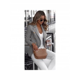 Plus Size - Plus-size Women'S Solid Color Double-Breasted Fitted Waist Long-Sleeved Suit Jacket | Elegant Style with Lapel Collar and Button Details, Perfect for All Seasons