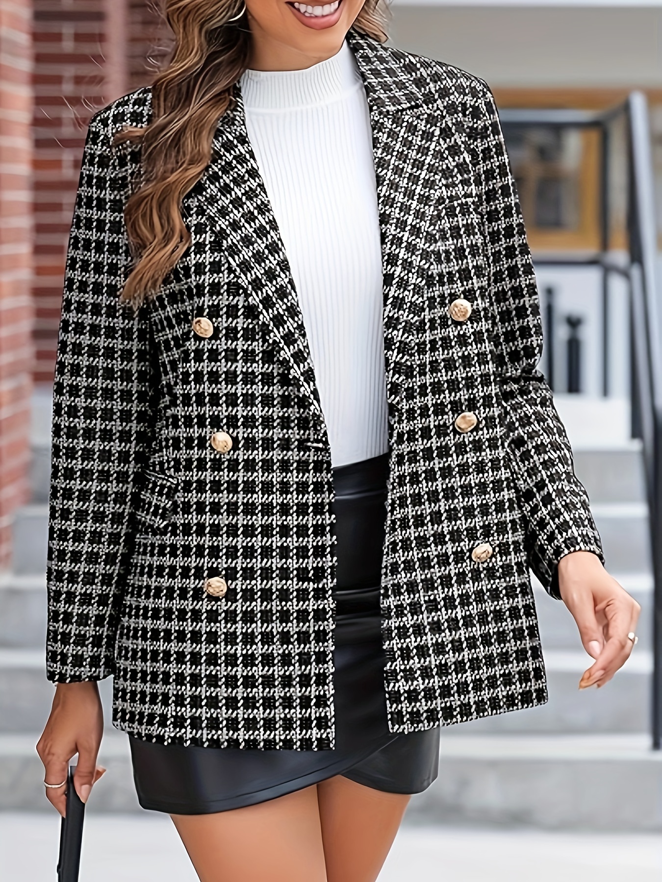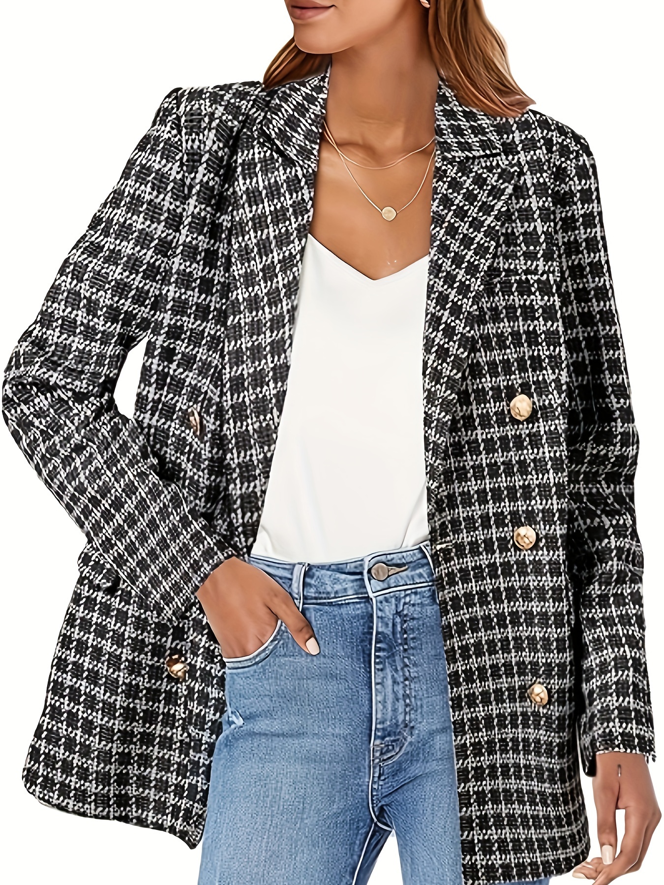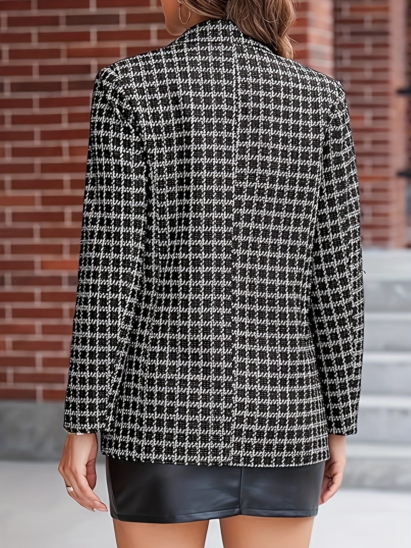 Elegant Plus Size Houndstooth Blazer for Women - 100% Polyester, Lapel Collar, Woven, Non-Stretch Fabric, All-Season, Regular Fit Adult Jacket