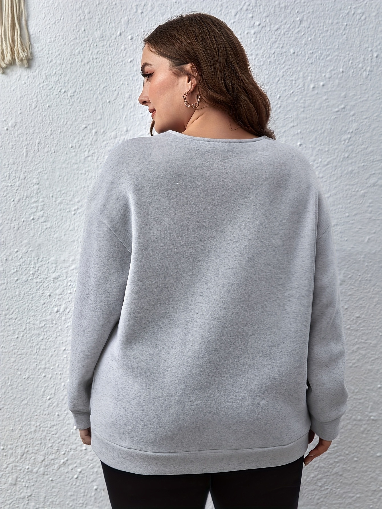 [Plus Size Sweatshirt] Plus Size, Autumn and Winter New European Style Plus Size Solid Color V-Neck Lace Elegant Pullover Sweatshirt for Women