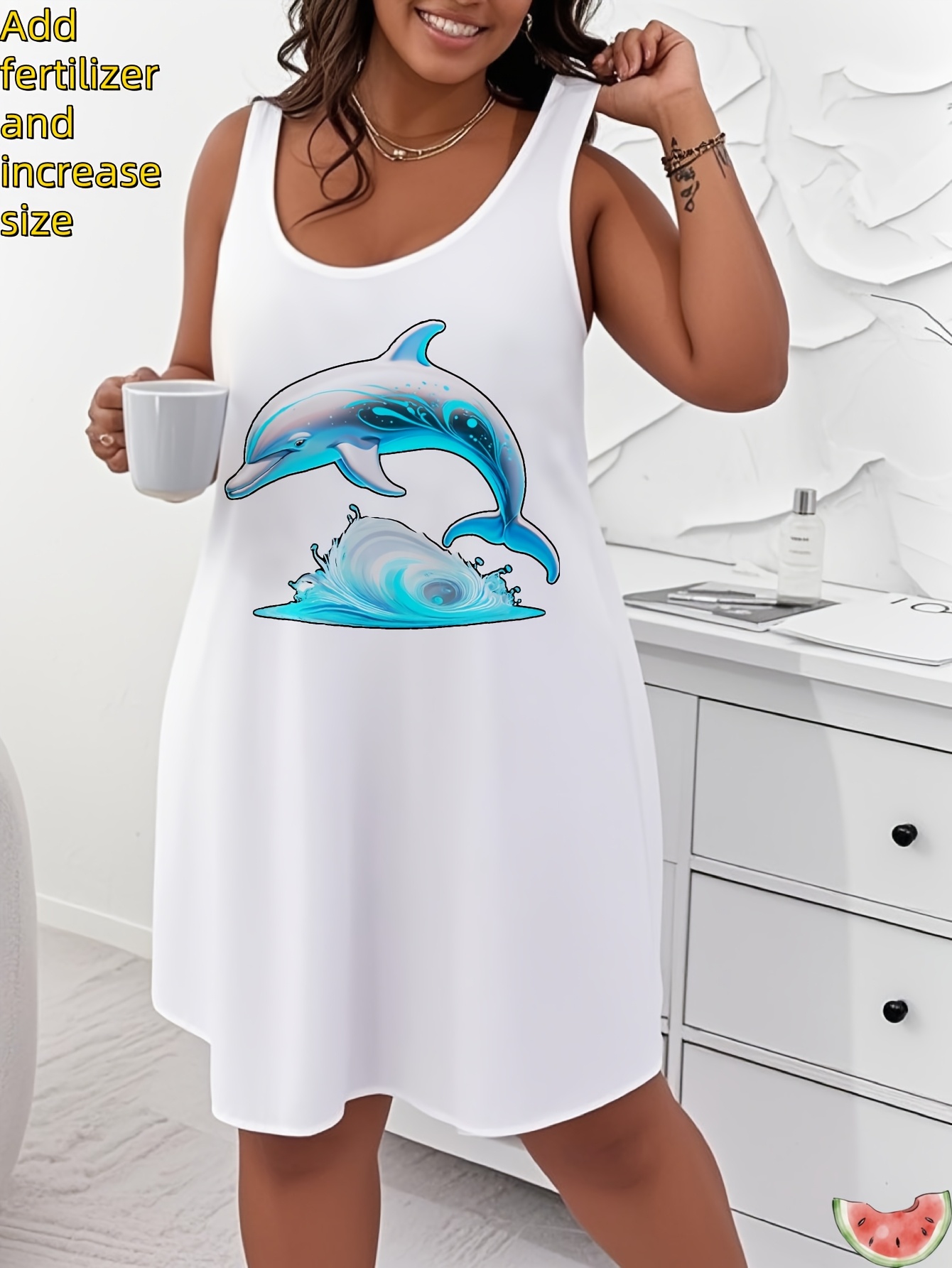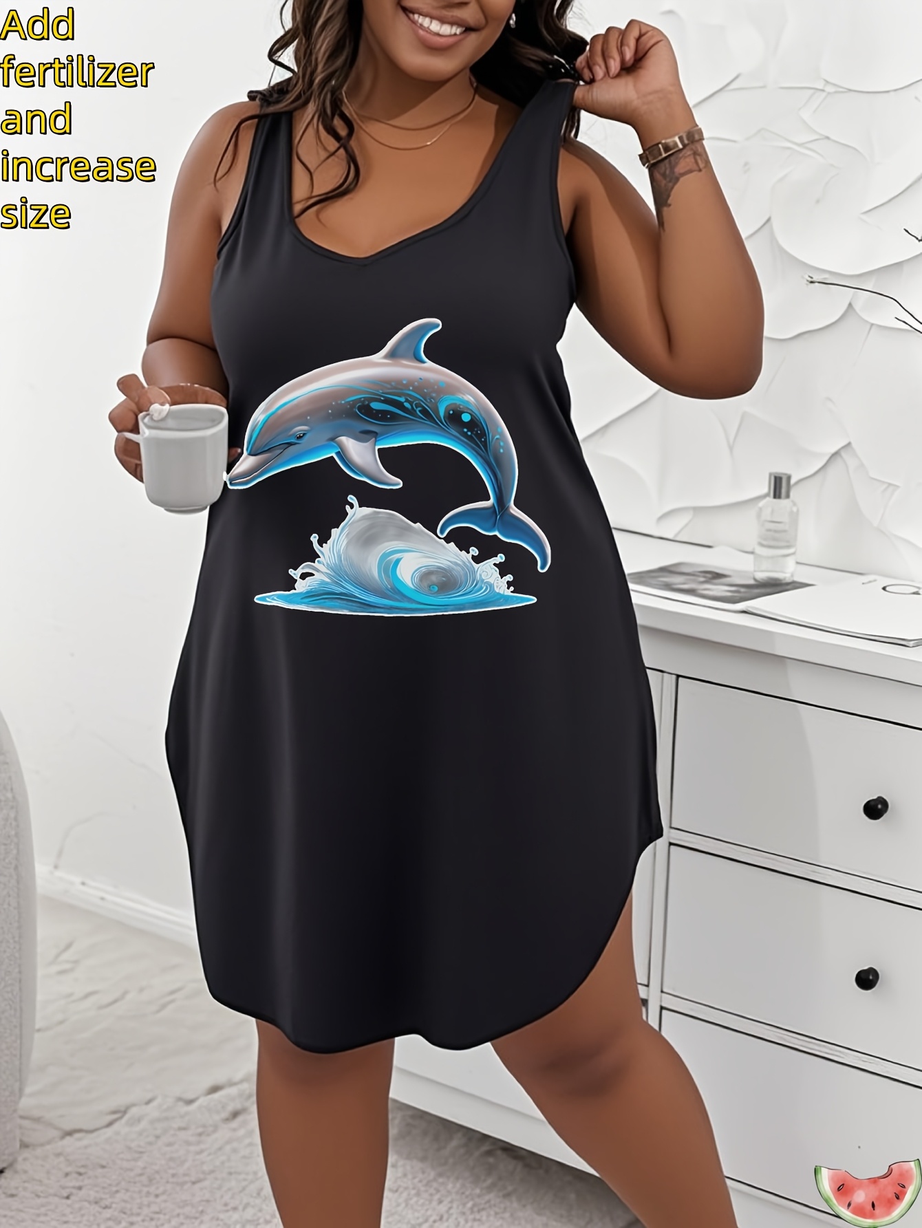 Plus Size Women'S Tops 100% Breathable Tank Dress with Dolphin Wave Print for Casual Wear, Plus Size Women'S Oversized Loose Fit Tank Dress, Large Size Womens Tops for Everyday Use