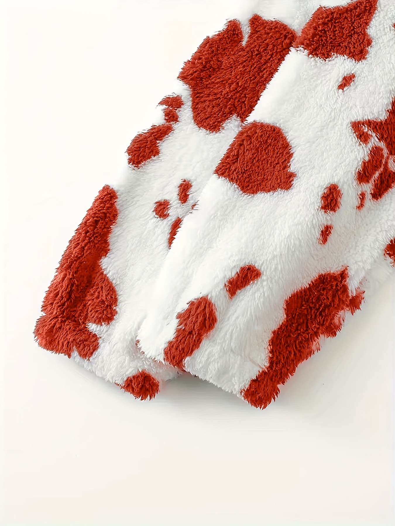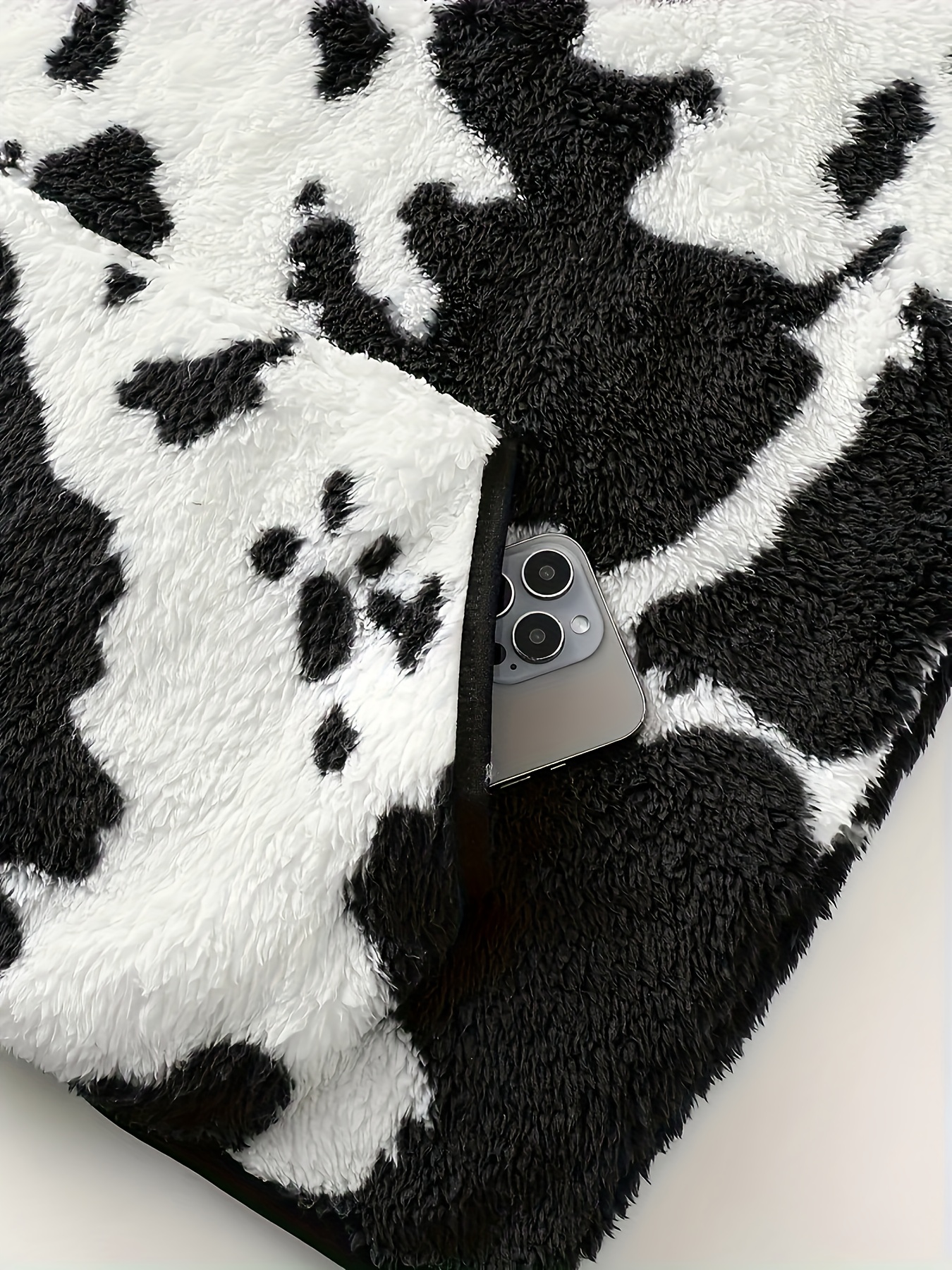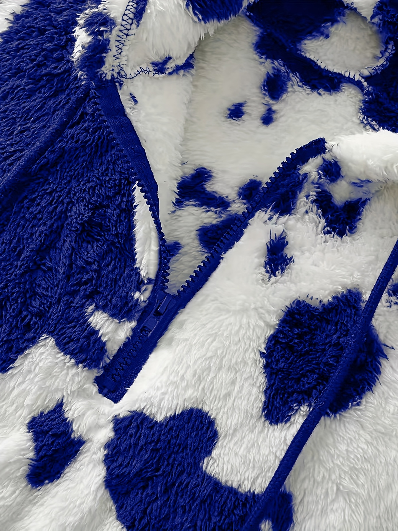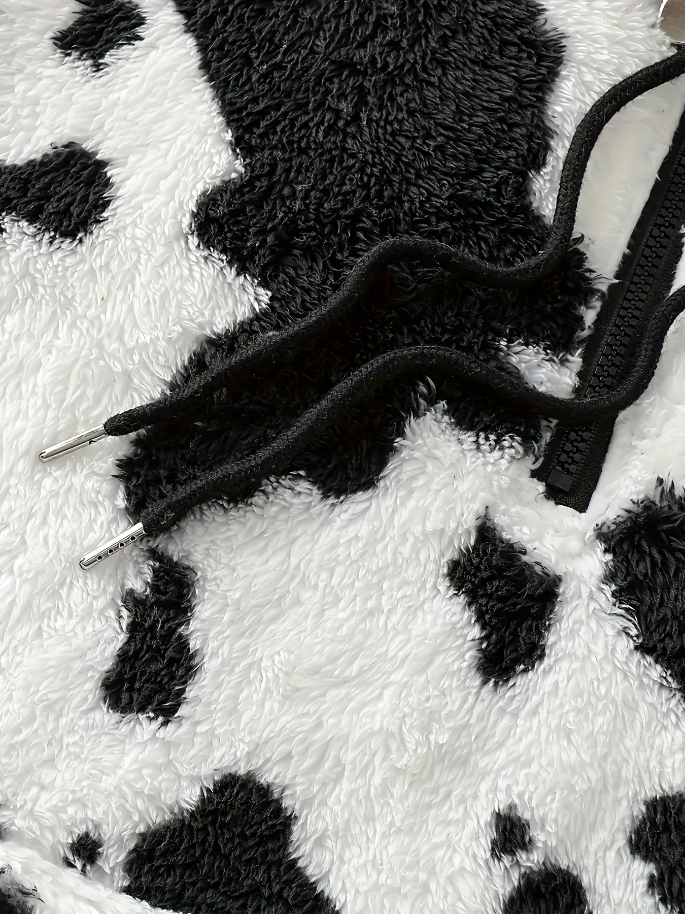 Women's Elegant Half-Zip Hooded Jacket, Plus Size Winter Warmth Coat with Full-Zip Front, Soft Fleece Lining, Animal Print (Cow/Sheep Design), Casual Outerwear, Cold Weather Wear, Stylish Outerwear, Zip-Up Coat