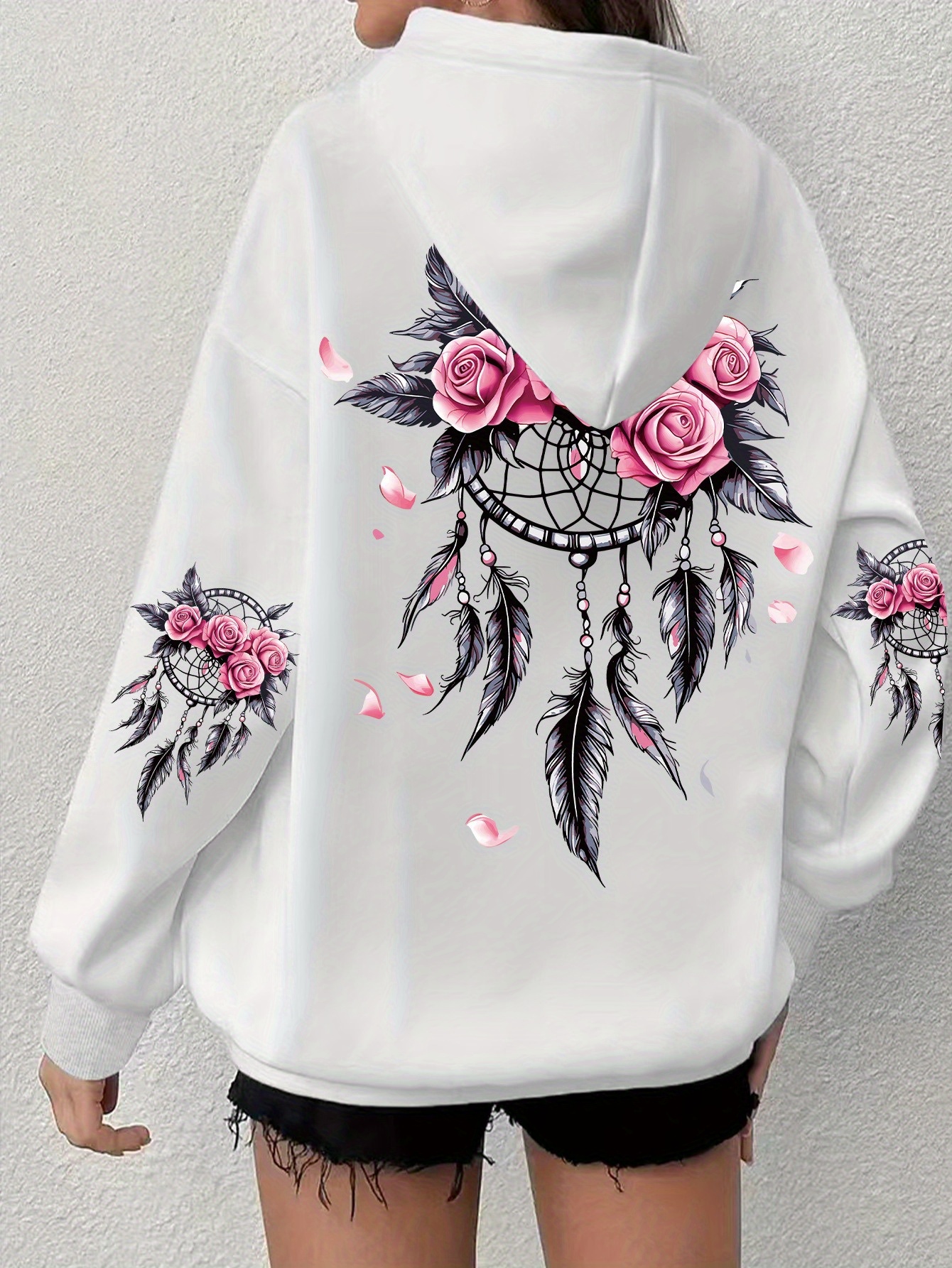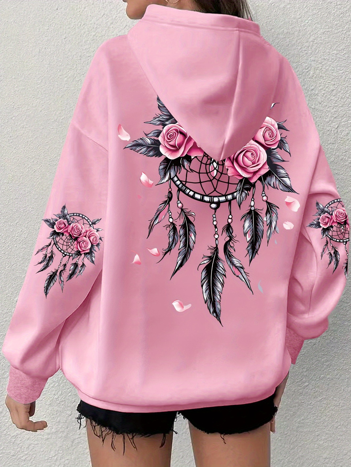 Women'S Plus Size Boho Chic Hoodie - Soft, Comfortable Long Sleeve with Dreamcatcher & Floral Print, Casual Pullover with Pockets for Everyday Wear, Casual Wear Hoodie|Boho Chic Style|Soft Fabric Hoodie