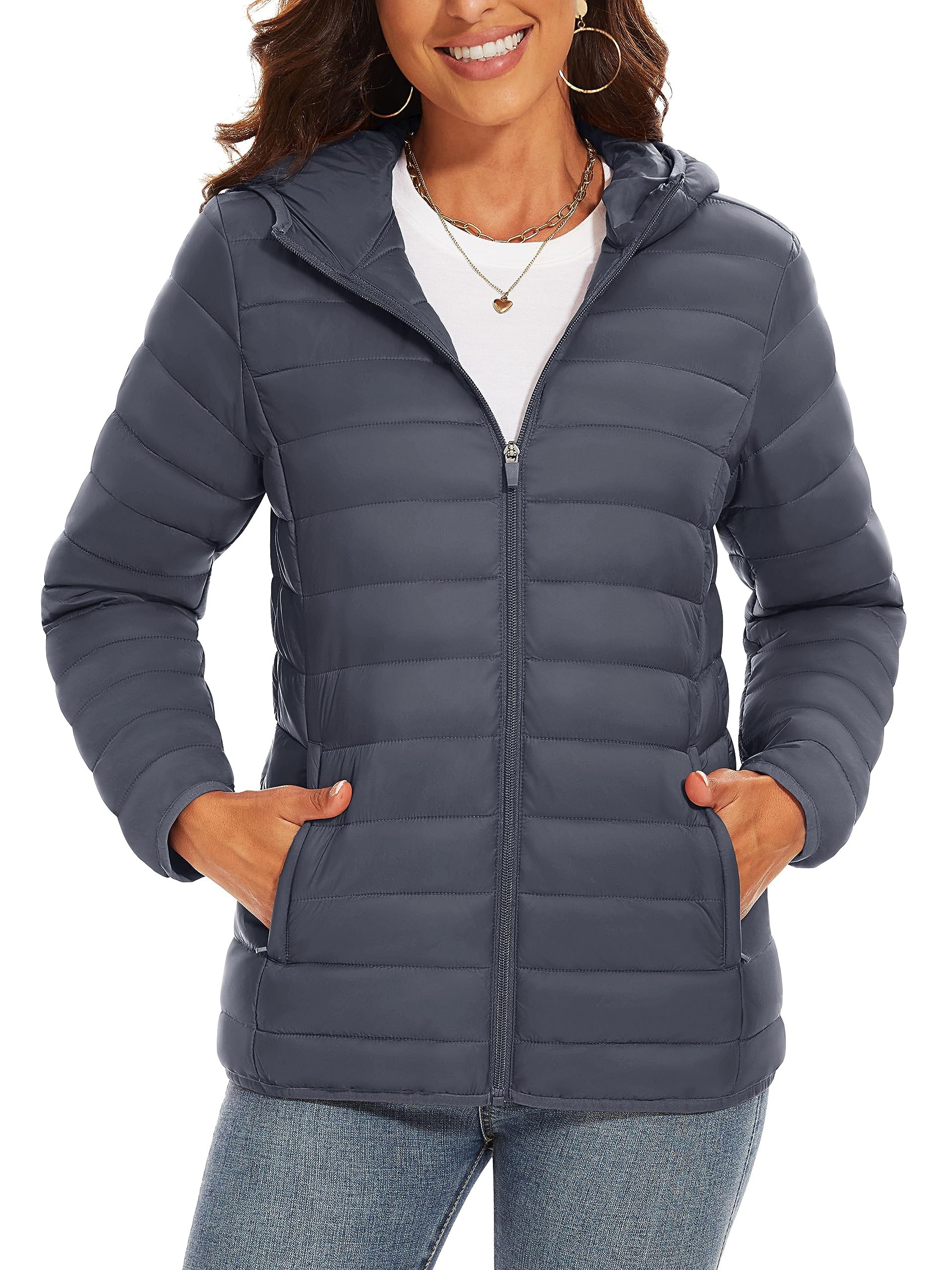 Plus Size Women's Puffer Jacket - Ultra-Lightweight, Warm, and Comfortable Hooded Coat with Full Zip and Waterproof Windproof Design for Hiking, Camping, Mountaineering, and Winter Outdoor Activities - Fashionable Padded Jacket for Curvy Figures