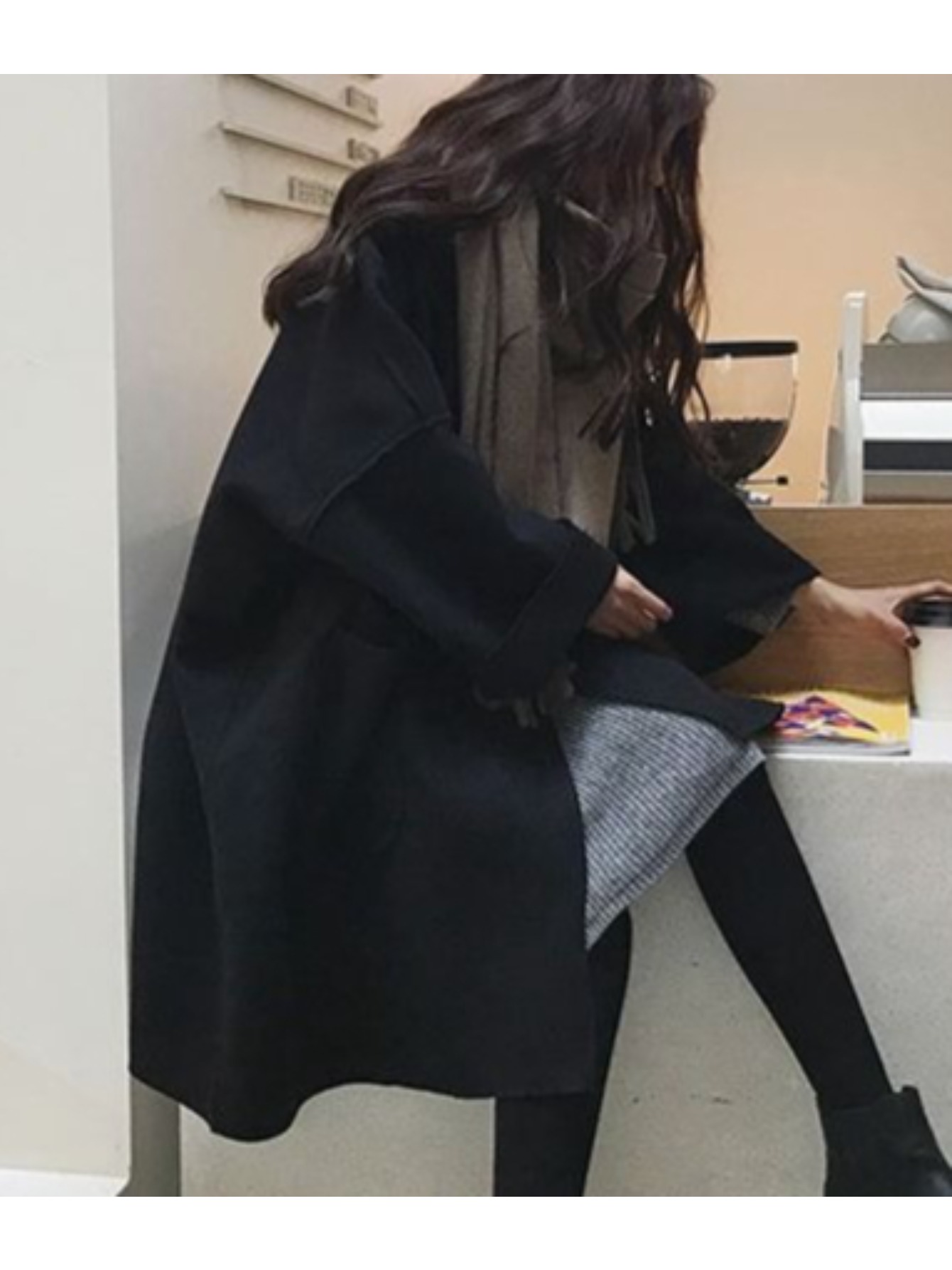 Women's New Korean Winter Coat - Collar Loose-Fit Mid-Length Jacket, Solid Color Warm Outerwear for Fall & Winter, Machine Washable Casual Blazer for or Weekend Outfits